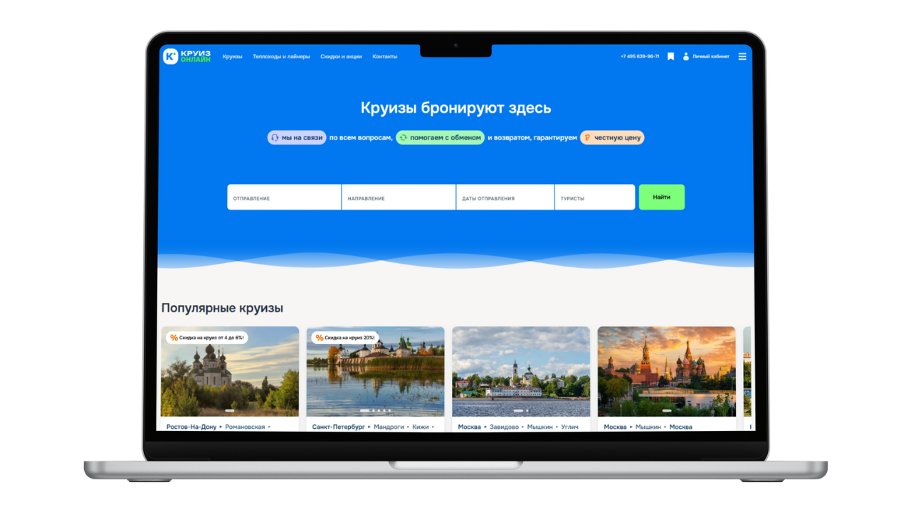 Круиз.онлайн 2.0 - это современная цифровая платформа для поиска, подбора и онлайн-бронирования речных и морских круизов. Мы объединили весь ассортимент туроператоров в едином интерфейсе, где можно легко выбрать маршрут, каюту и оплатить бронирование без посредников. Удобный личный кабинет, актуальные скидки и поддержка на всех этапах - ваш отдых начинается с первого клика.